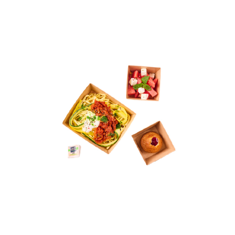 Linguini aux tomates et origan, courgettes, stracciatella et pesto basilic