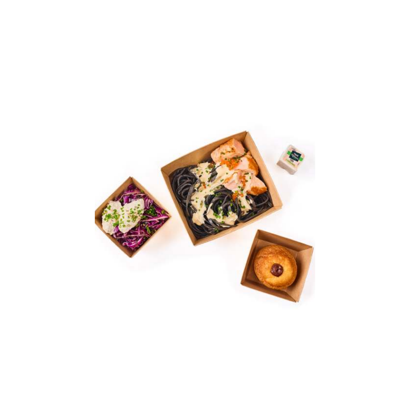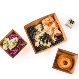 Pavé de saumon, tagliatelles à l’encre de seiche et ciboulette