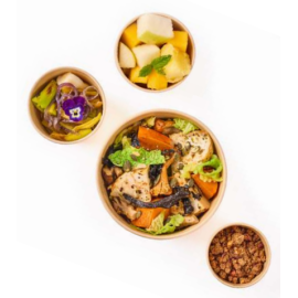 Céleri rôti aux graines de courge et wakamé, butternut au paprika fumé, chou vert et fricassée de champignons