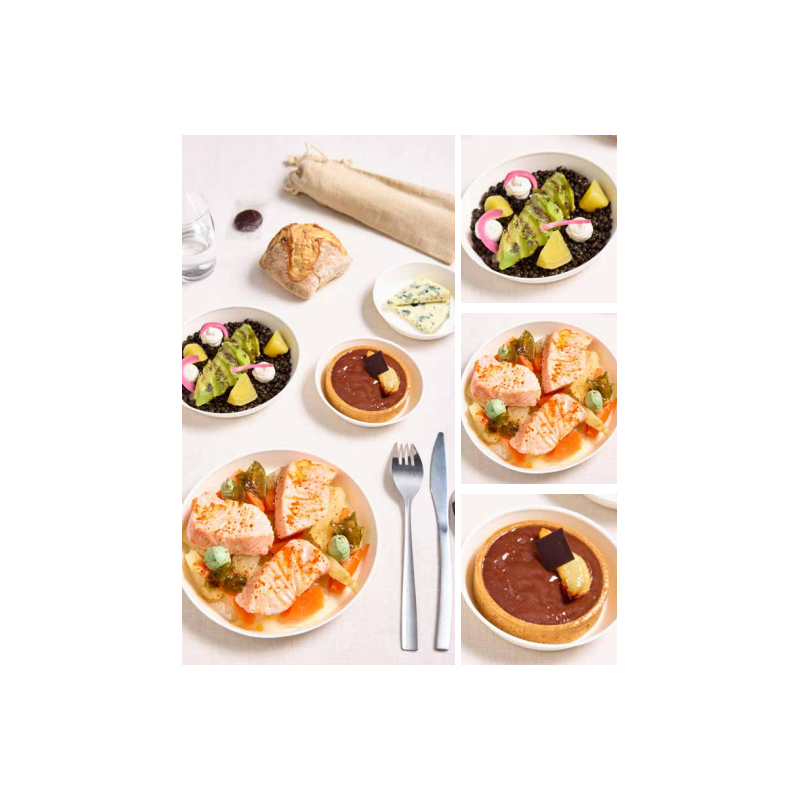 PLAT Escalopes de saumon, tajine de légumes, harissa verte et laitue de mer