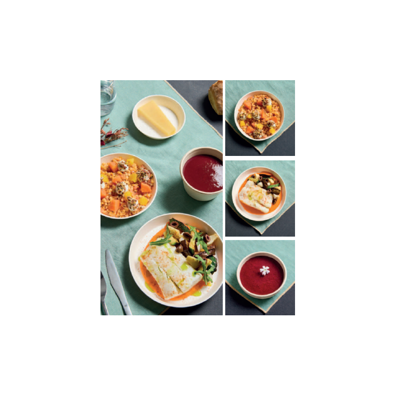 PLAT Filet de colin, légumes grillés, coulis péquillos et roquette